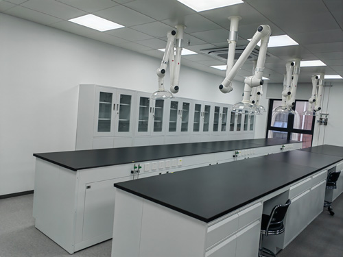 1.材 料:廚房操作臺選取12.7mm厚威盛亞實芯理化檢驗板,邊沿加厚為25.4mm,耐灼傷、地面防水、耐持續高溫耐用、耐抗爭、不減形、無污染、易清潔衛生、并具備有良好的的承重墻耐熱性。